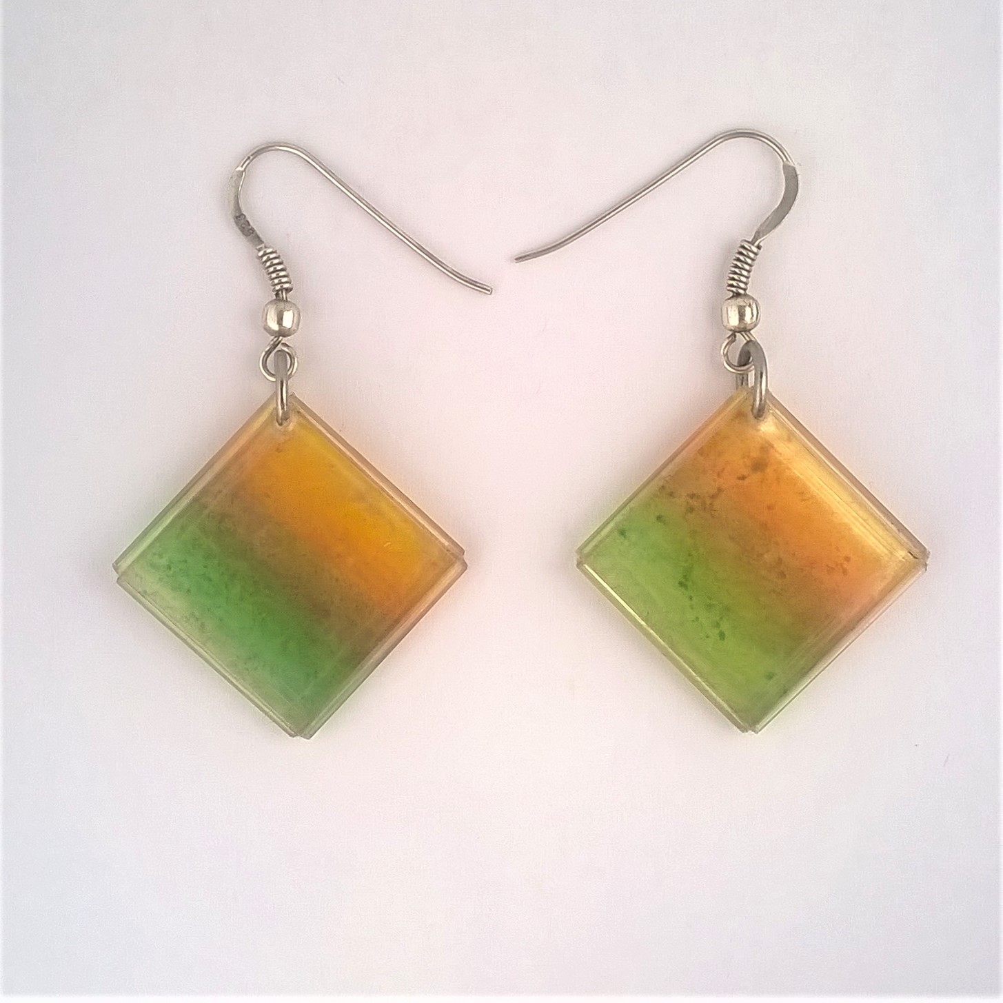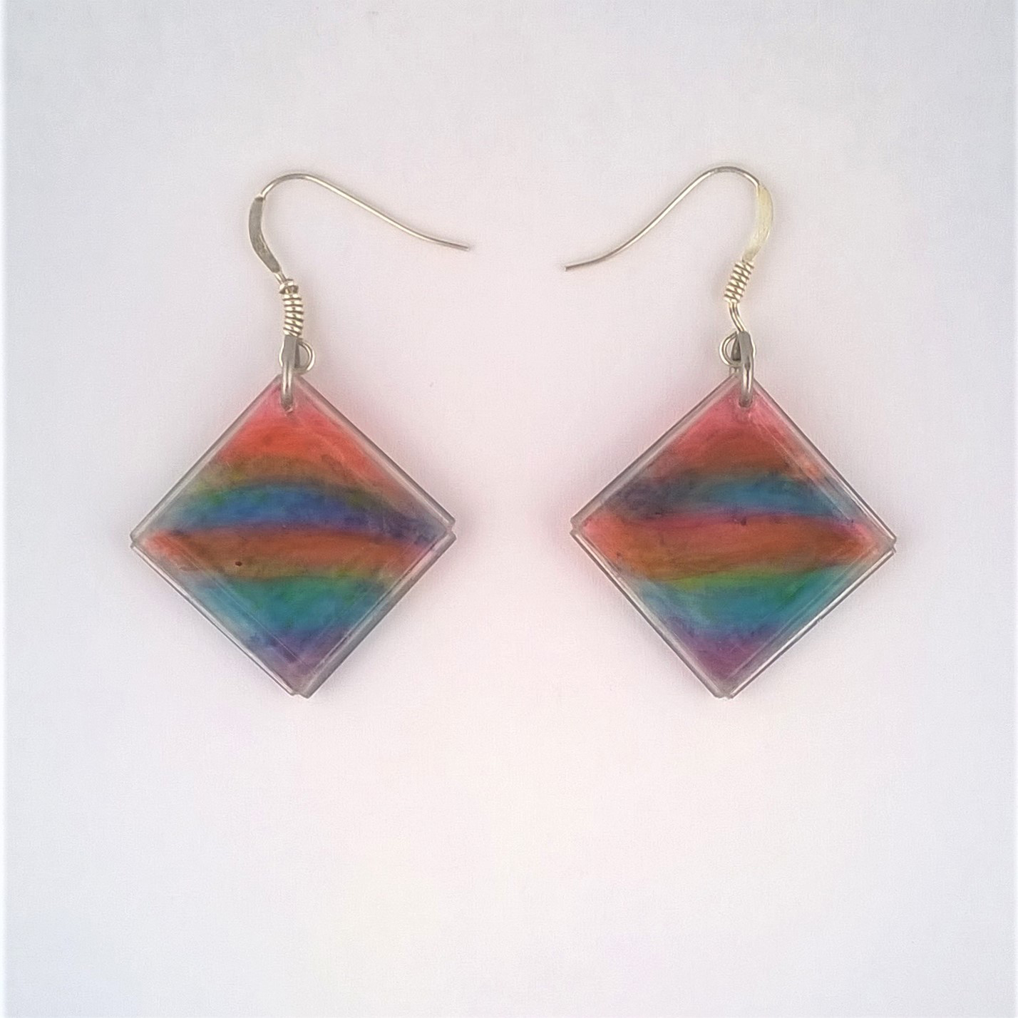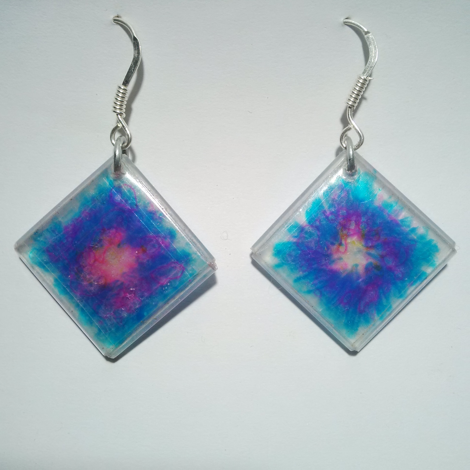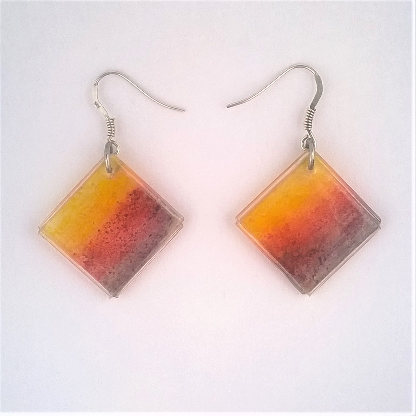 Une technique unique pour réaliser des bijoux intemporels et durables. Mélangeant superposition de couches de rubans, pigments et encres de couleurs. Je joue avec la lumière, la transparence, la profondeur et les possibilités infinies que ce matériau m'inspire. Pour parfaire ma démarche écologique, les anneaux sont en acier inoxydable, les attaches sont en argent 925 et je vends mes bijoux dans des pochettes de papier Origami réalisées par mes soins.