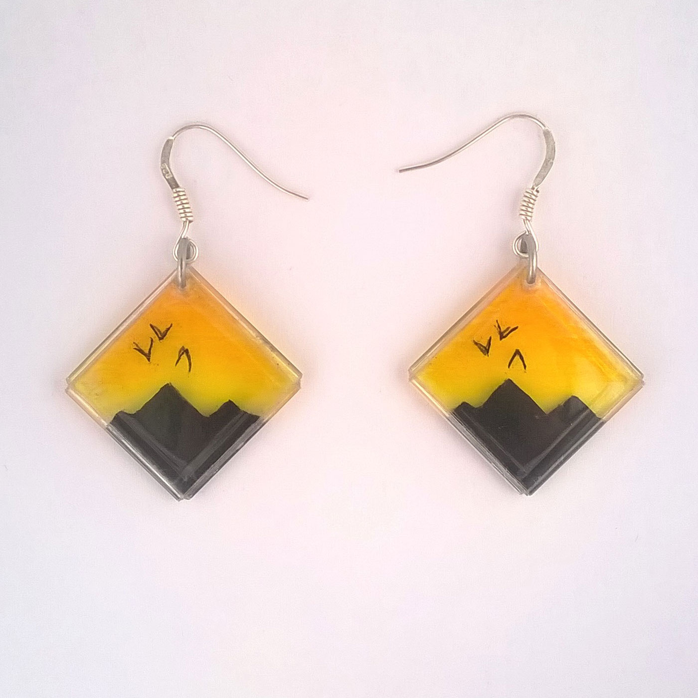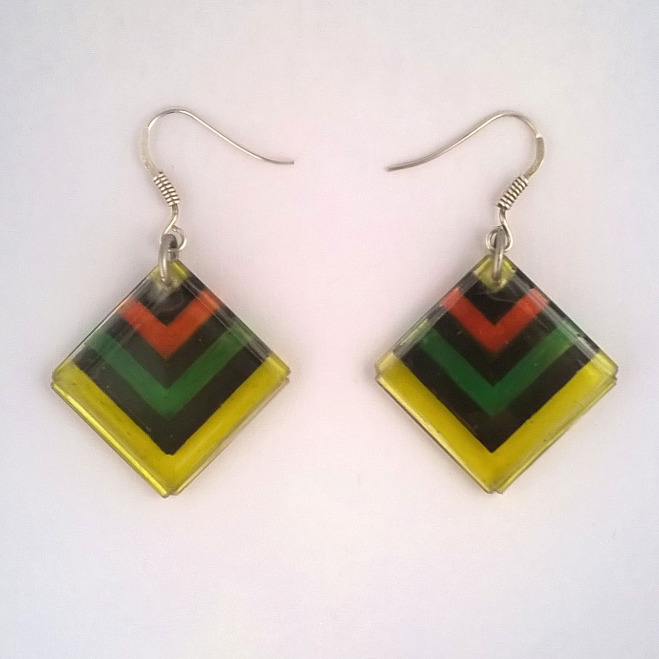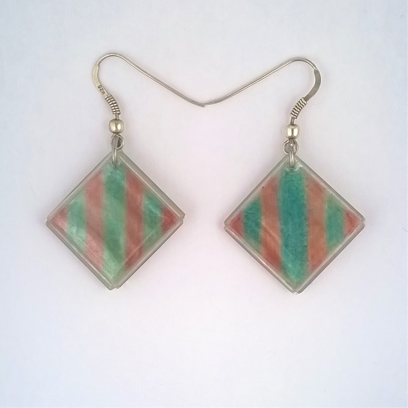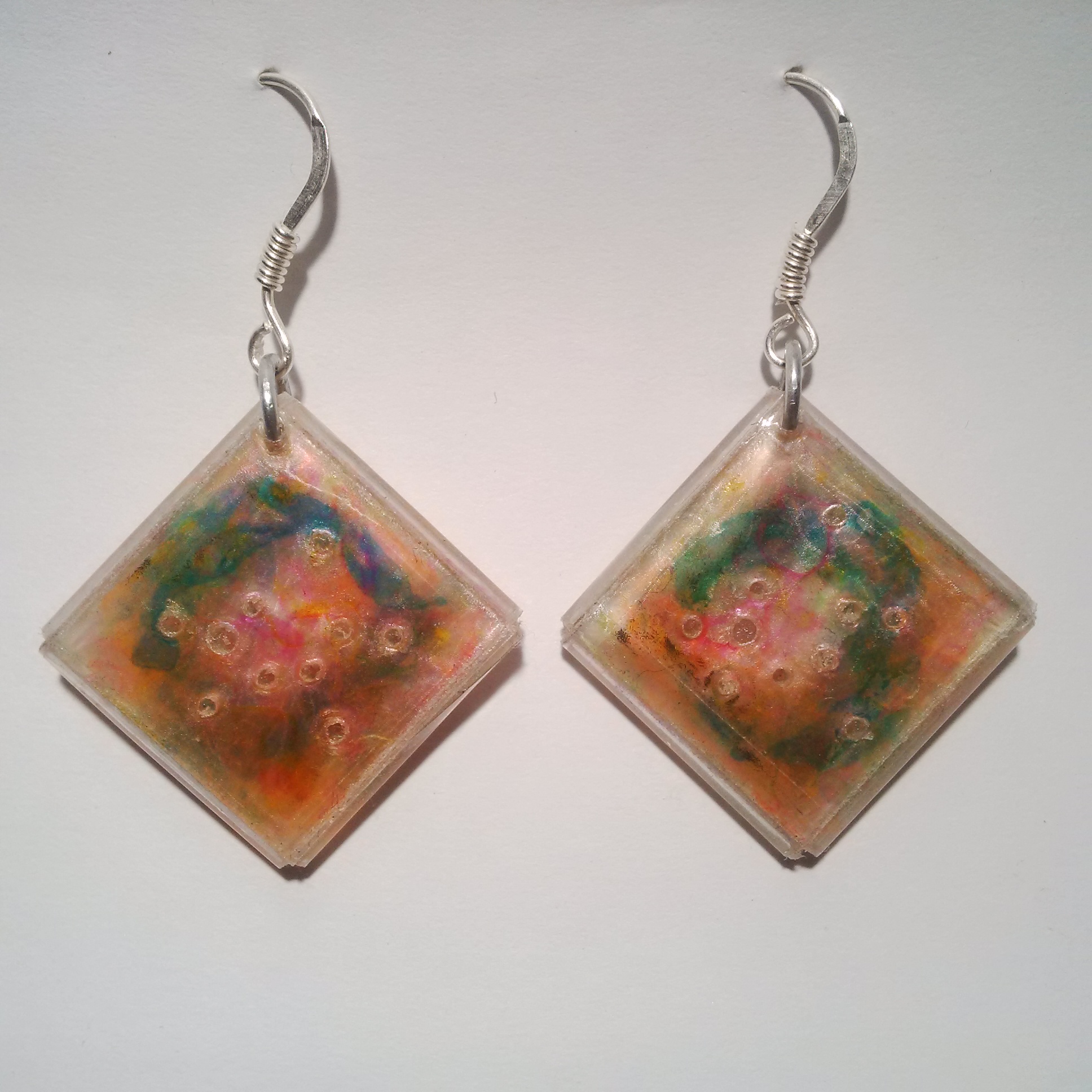 Une technique unique pour réaliser des bijoux intemporels et durables. Mélangeant superposition de couches de rubans, pigments et encres de couleurs. Je joue avec la lumière, la transparence, la profondeur et les possibilités infinies que ce matériau m'inspire. Pour parfaire ma démarche écologique, les anneaux sont en acier inoxydable, les attaches sont en argent 925 et je vends mes bijoux dans des pochettes de papier Origami réalisées par mes soins.